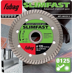 Алмазный диск для болгарки Fubag Slim Fast (Фубаг Слим Фаст) – диск алмазный отрезной универсальный для эффективной тонкой резки без сколов мраморной и керамической плитки, натурального и искусственного строительного камня, железобетона, красного кирпича, металлического листового профиля, гипсокартона и т.д. Используется с угловыми шлифовальными машинами (ушм).