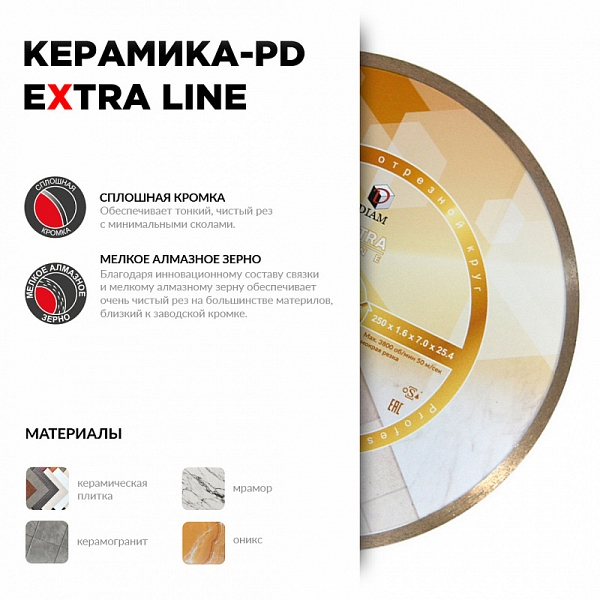 Преимущества круга отрезного алмазного Diam Extra Line 1A1R Корона Керамика-PD 350 мм: