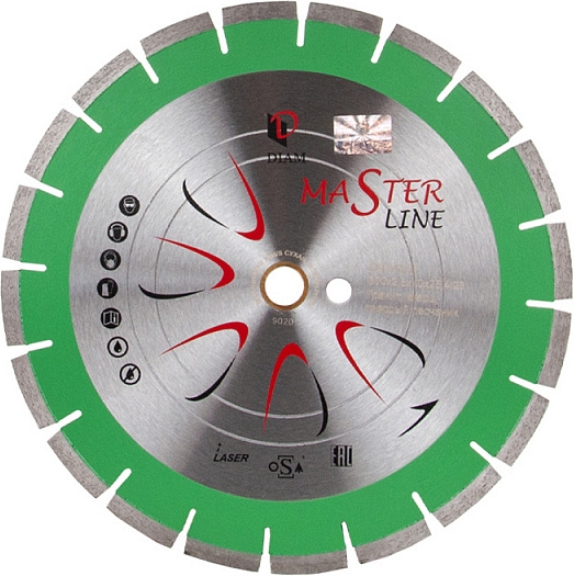 Сегментный алмазный круг Diam Master Line 1A1RSS Гранит 300 мм (Диам Мастер Лайн 1А1РСС Гранит 300 мм) – специальный сегментный алмазный отрезной диск для сухой и мокрой резки гранита, кварца, клинкера, твердых песчаников на бензорезах, электрических резчиках и плиткорезах, системах резки крупноформатной плитки, камнерезных станках, стенорезных машинах, швонарезчиках и другом оборудовании, как с подачей, так и без подачи охлаждающей жидкости.