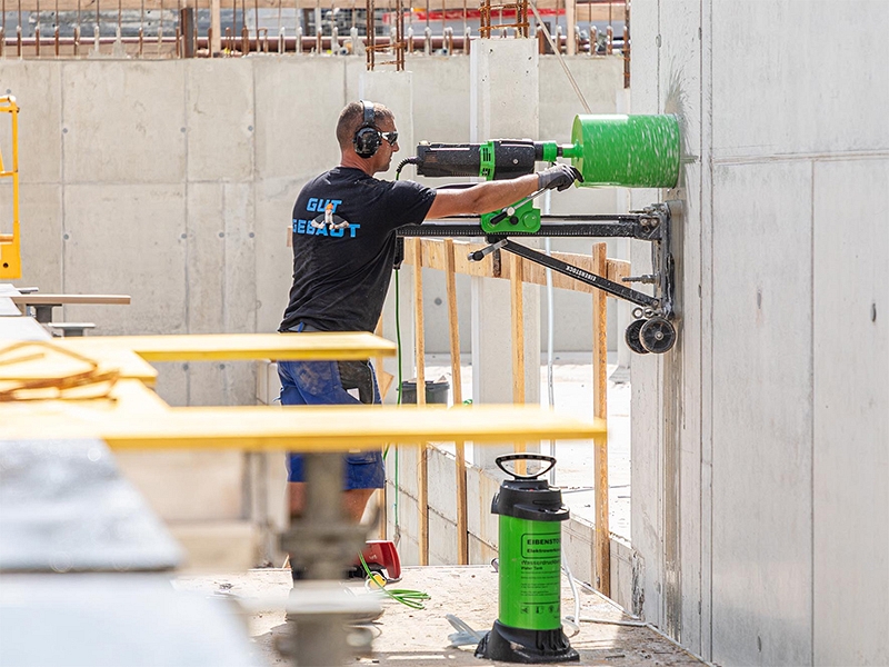 Станина для алмазного бурения Eibenstock BST 352 V (Айбеншток БСТ 352 В) предназначена для корончатого сверления отверстий Ø до 352 мм в различных строительных материалах во всей строительной отрасли, с применением дрелей и двигателей алмазного бурения.