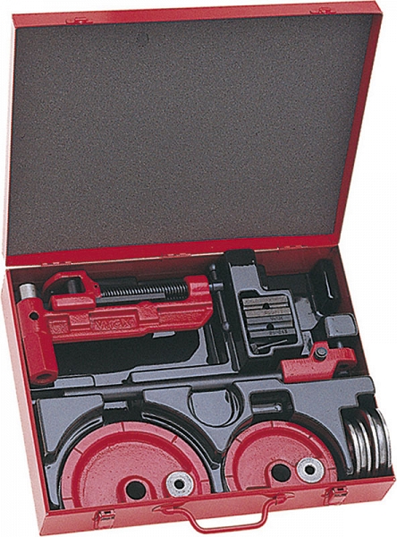 – Желтые стандартные сегменты: Ø труб 10 – 22 мм, толщина стенки труб 1 - 1,5 мм, угол изгиба 0° – 180°, малый радиус изгиба - Дополнительная принадлежность для крепления на верстаке: опорное основание, в которое устанавливается трубогиб, экономит место и позволяет работать в горизонтальном и вертикальном положении, хранится в чемодане для трубогиба